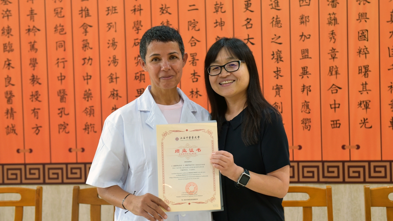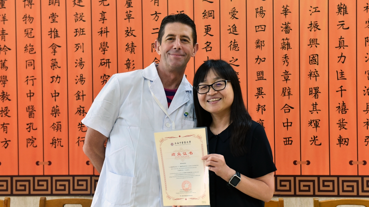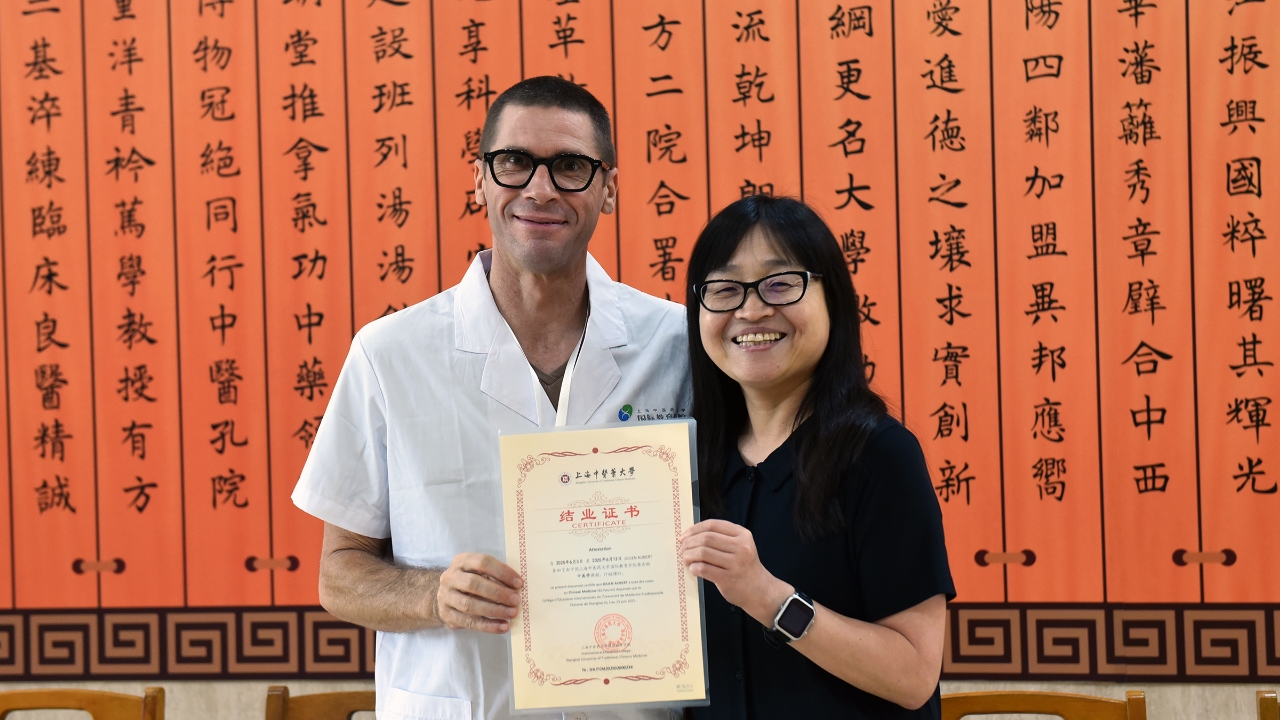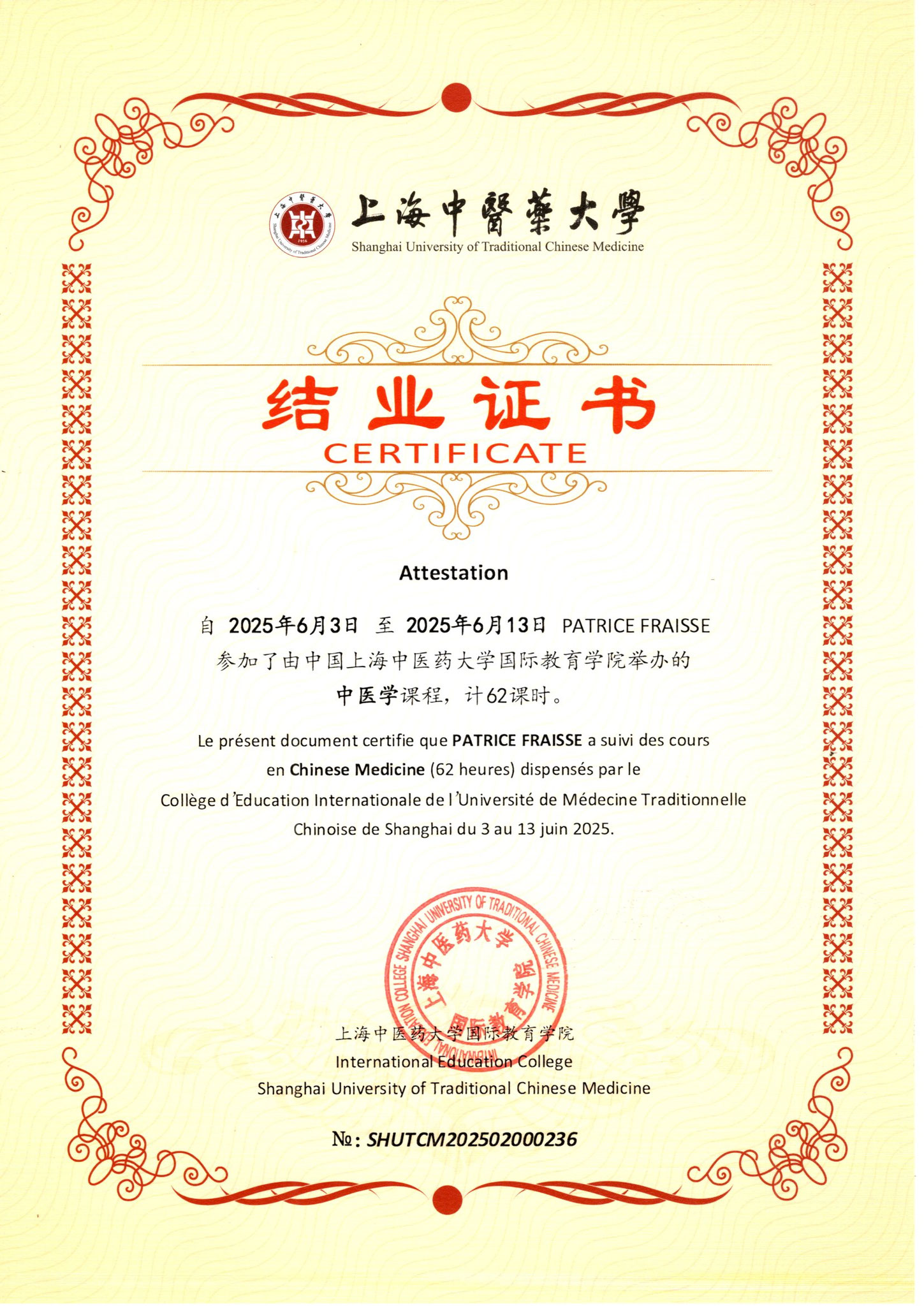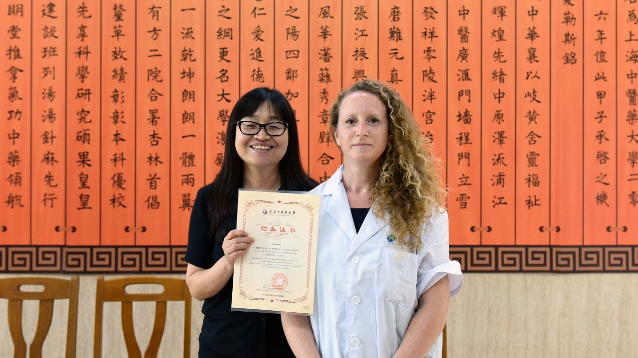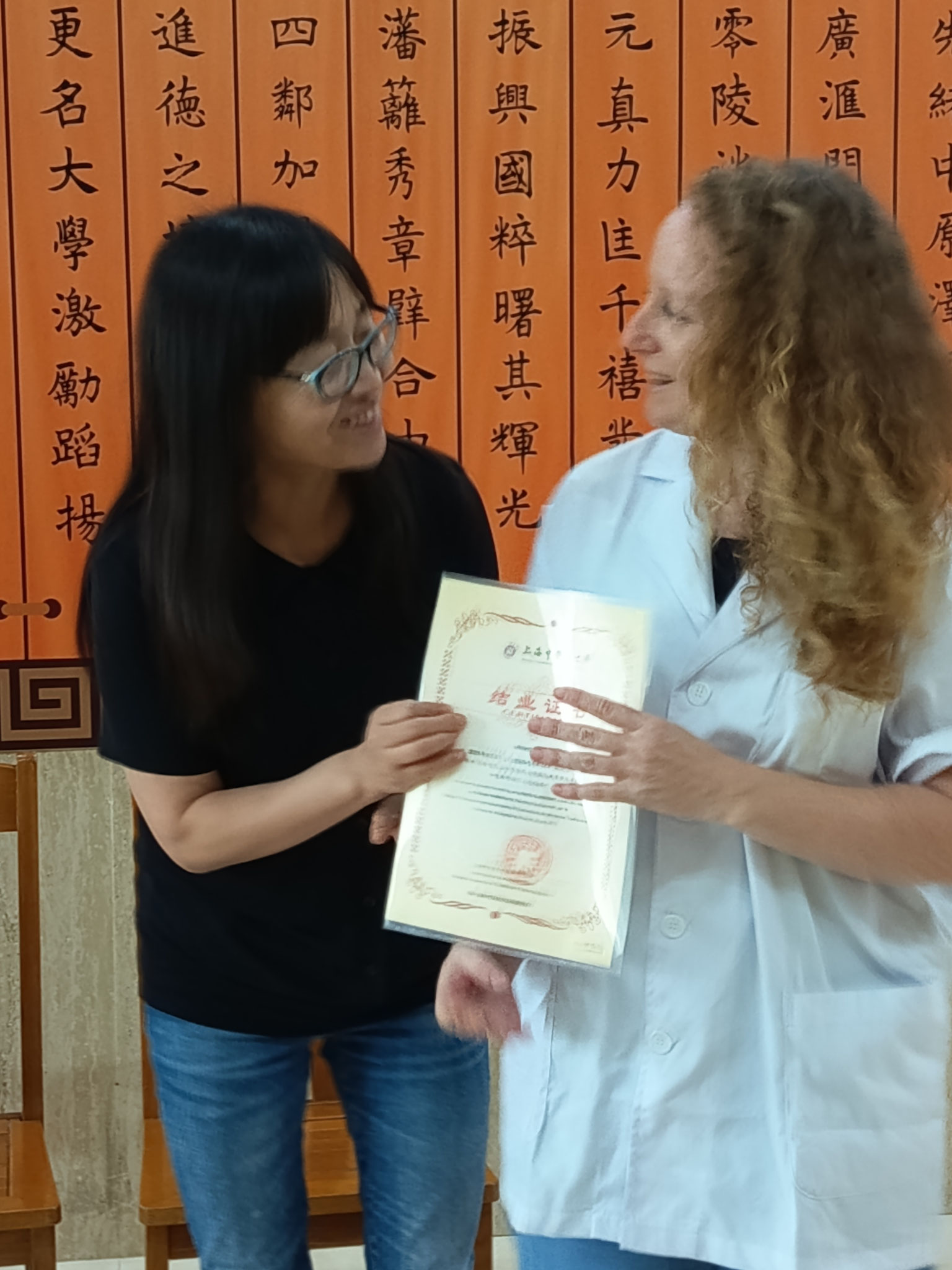 Après un stage riche en émotions et en nouveautés, nous avons reçu nos certificats par la doyenne de l'Université de Médecine Chinoise de Shanghai - SHUTCM.